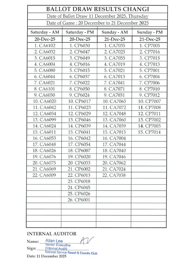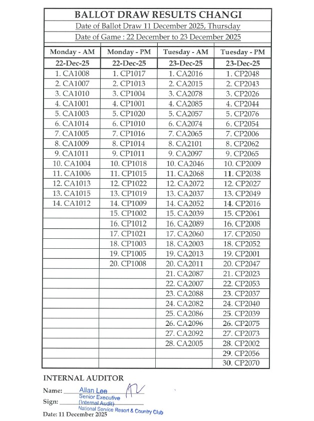 11 December 2025, Thursday - [BALLOTING RESULTS] FOR GAMES FROM 20-26 DECEMBER 2025]