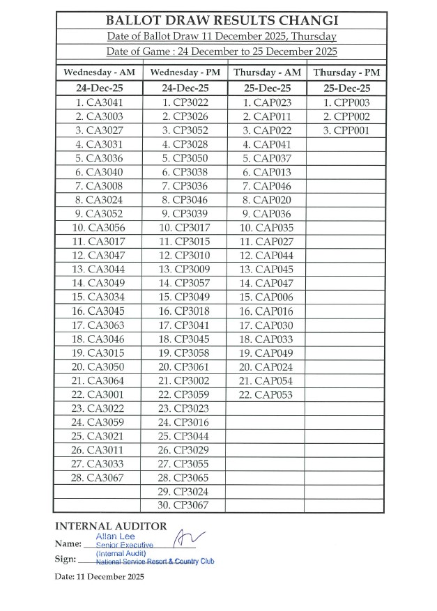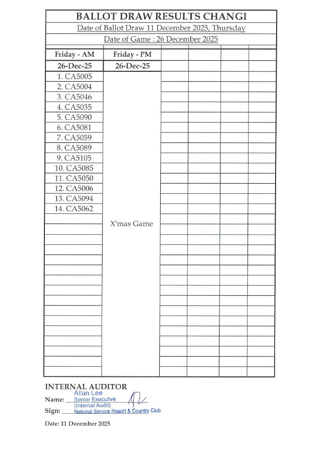 01 December 2025, Monday - [Advisory] - Reversion to Online Booking of Golf Slots at NSRCC Changi