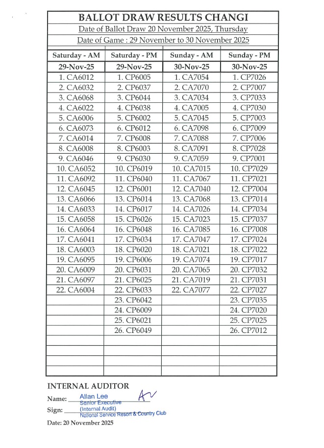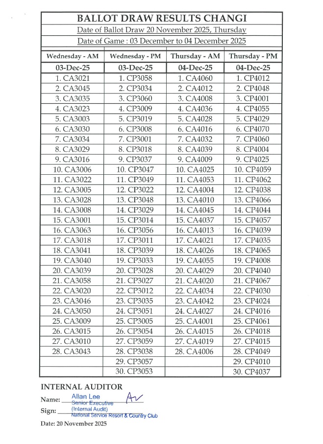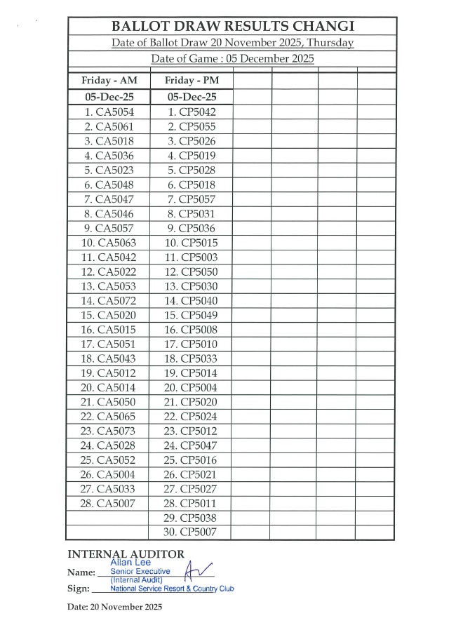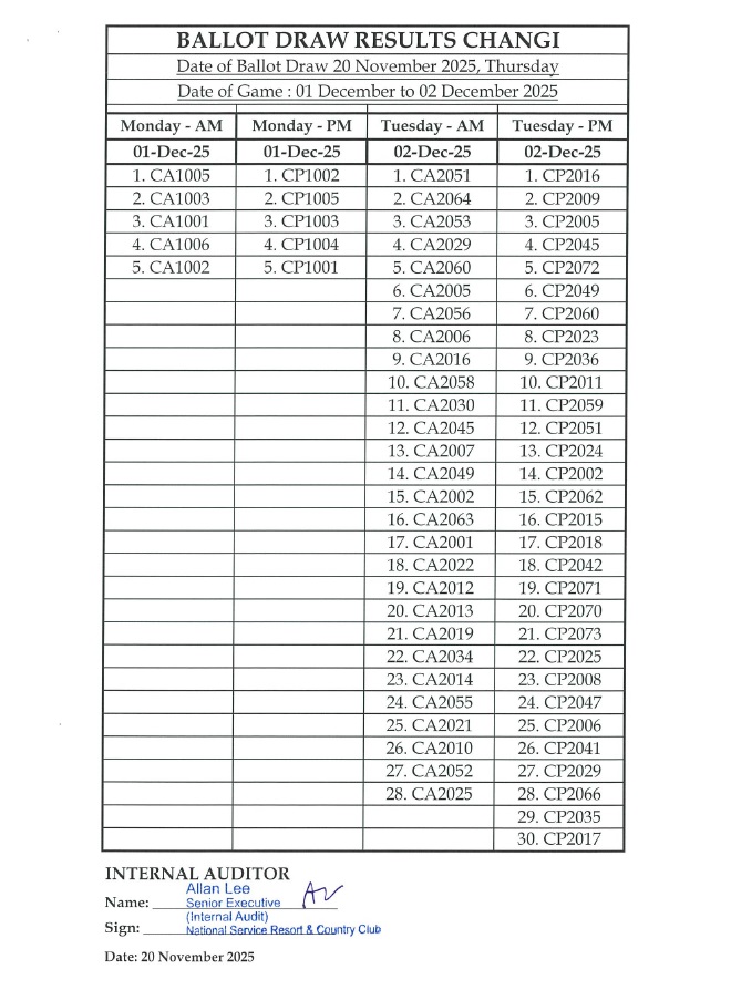 23 October 2025, Thursday - [BALLOTING RESULTS] FOR GAMES FROM 1-7 NOVEMBER 2025]