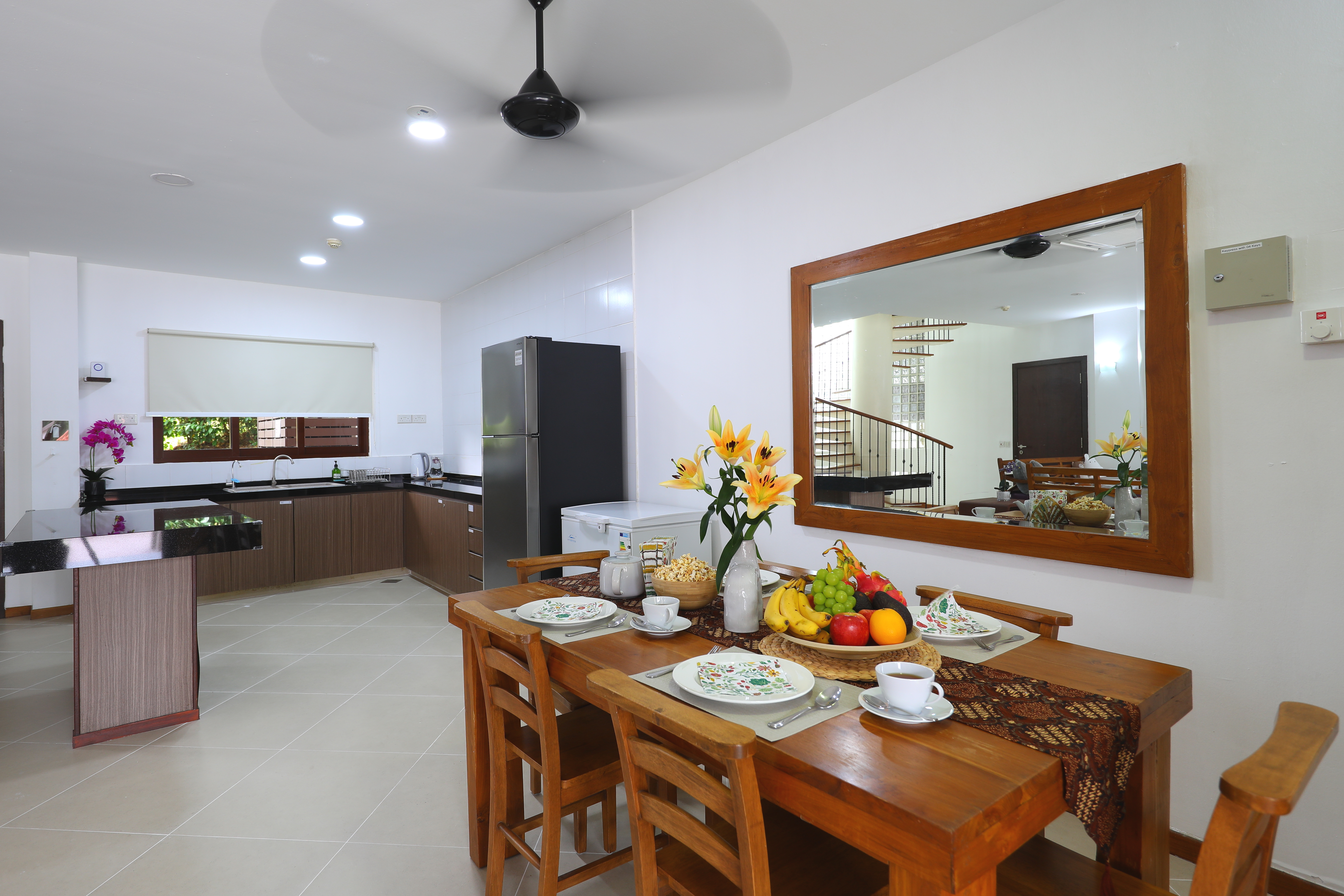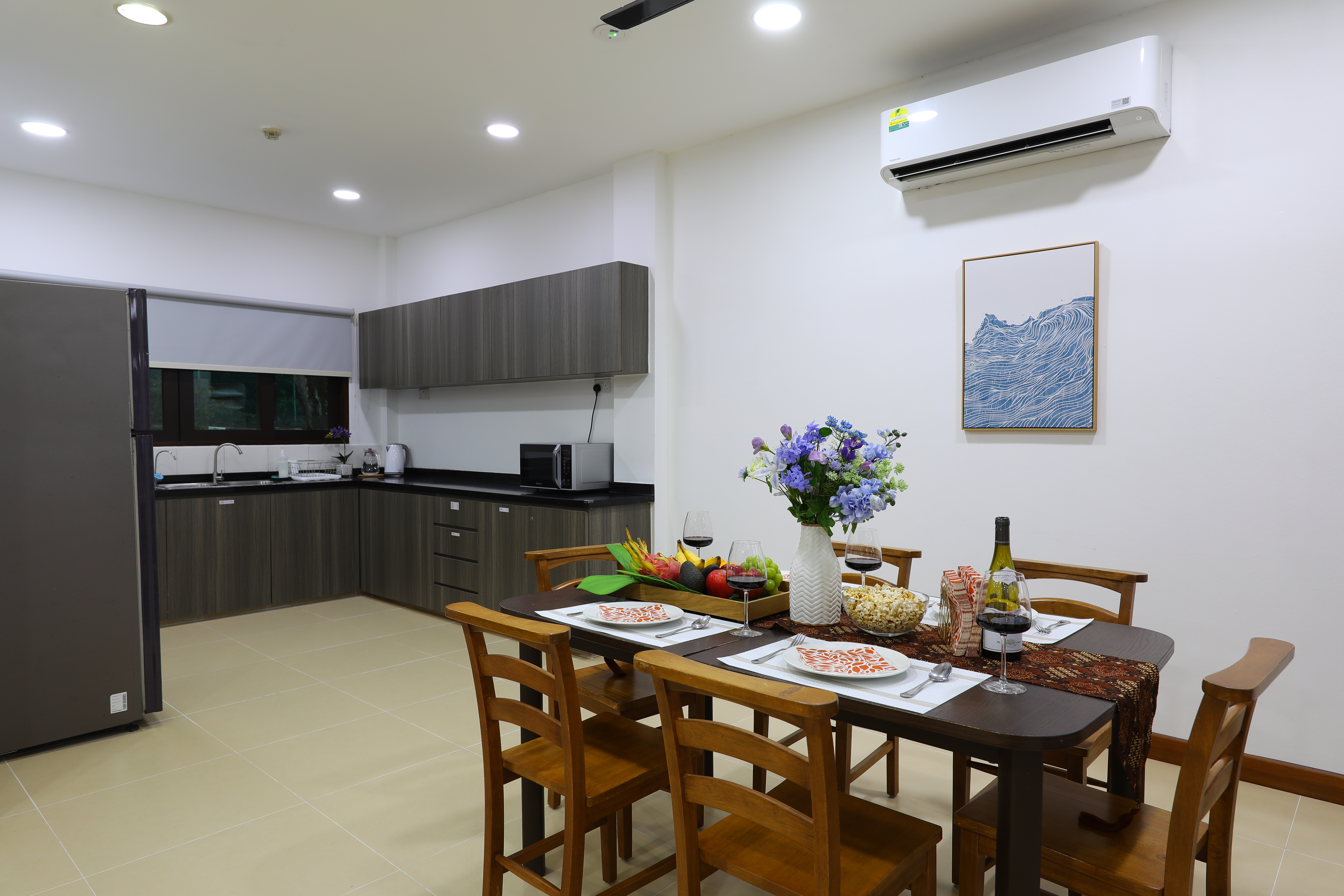 Kitchen (equipped with refrigerator, freezer, kettle & microwave oven)