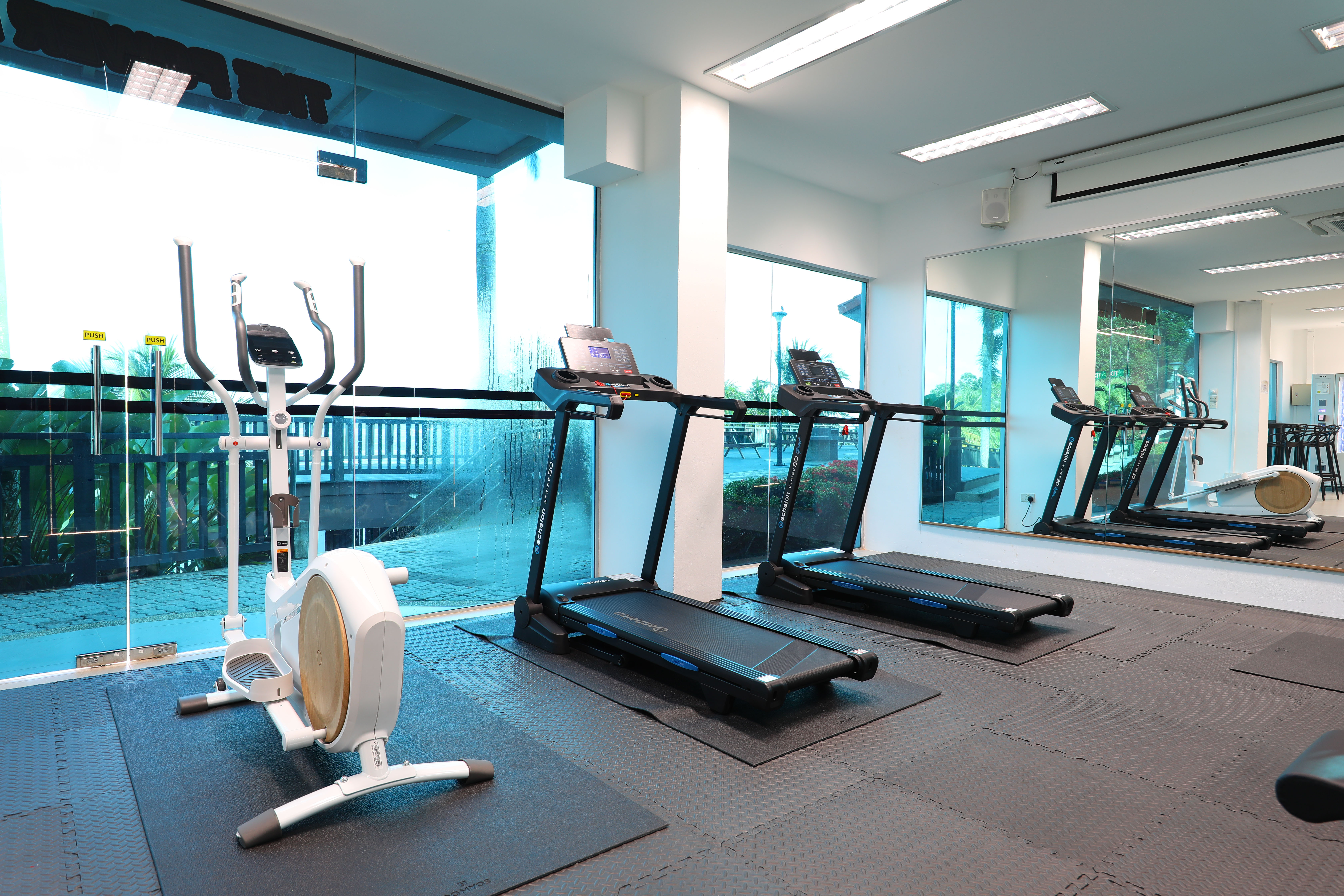 Micro-Gym for guests to work out while enjoying the sea view