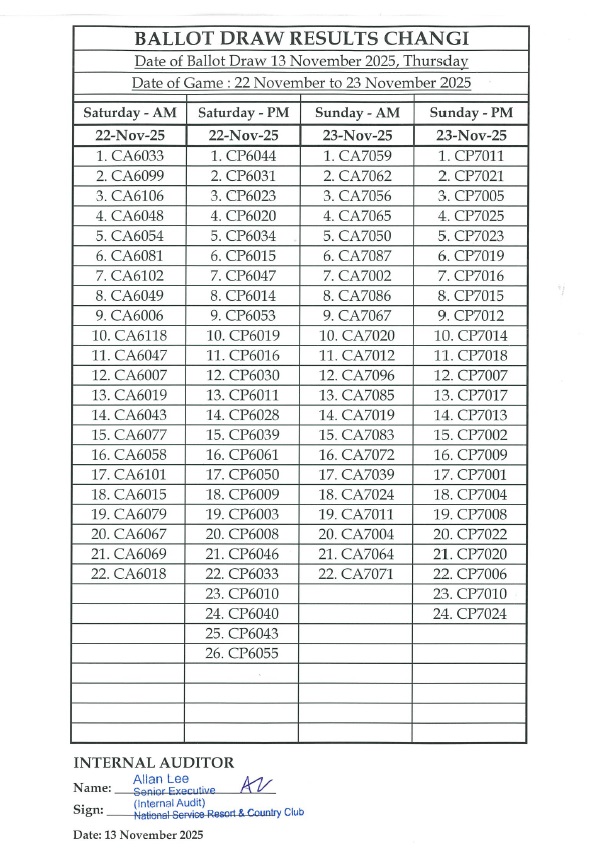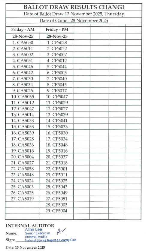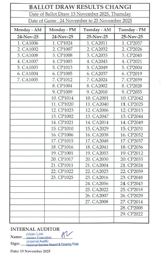 23 October 2025, Thursday - [BALLOTING RESULTS] FOR GAMES FROM 1-7 NOVEMBER 2025]