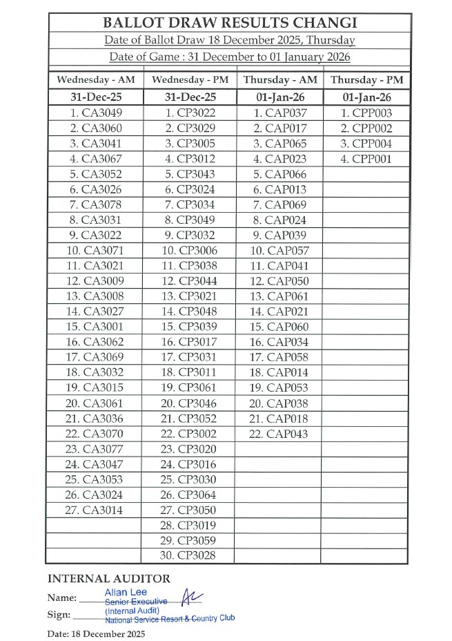 [BALLOTING RESULTS] FOR GAMES FROM 27 DECEMBER 2025-2 JANUARY 2026]