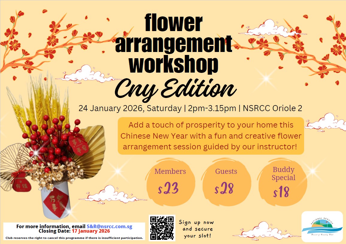 Join our CNY Flower Arrangement Workshop on 24 Jan 2026 and craft a beautiful festive centerpiece to brighten your home.