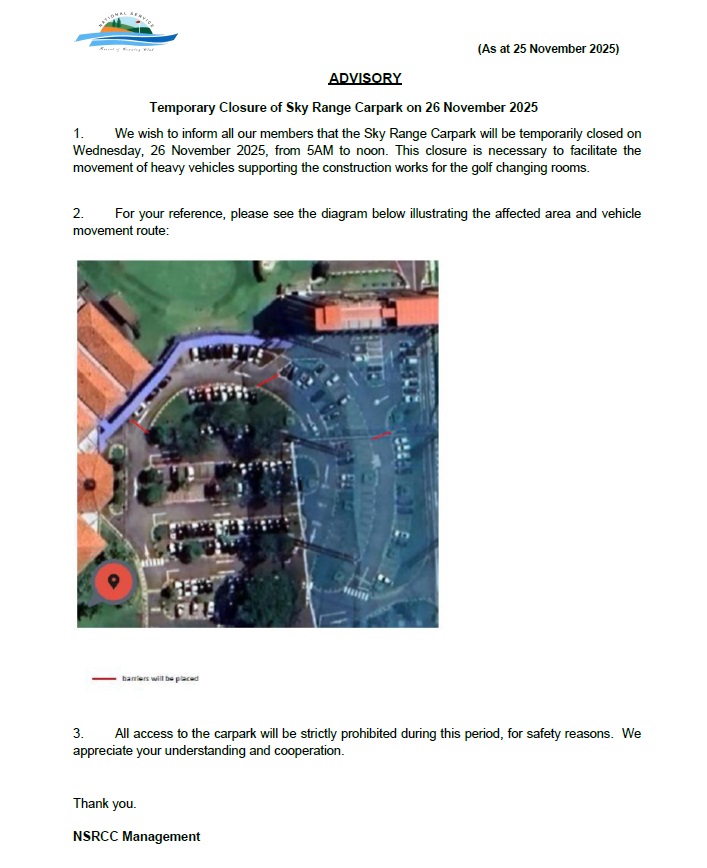 Temporary Closure of Sky Range Carpark on 26 November 2025