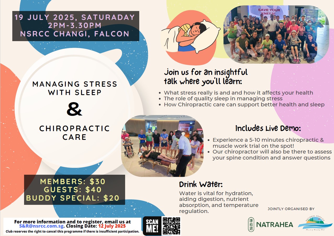 Do you know of anyone feeling the pressure of work and personal commitments? If so, encourage the person to join our workshop on 'Managing Stress with Sleep & Chiropractic Care'.