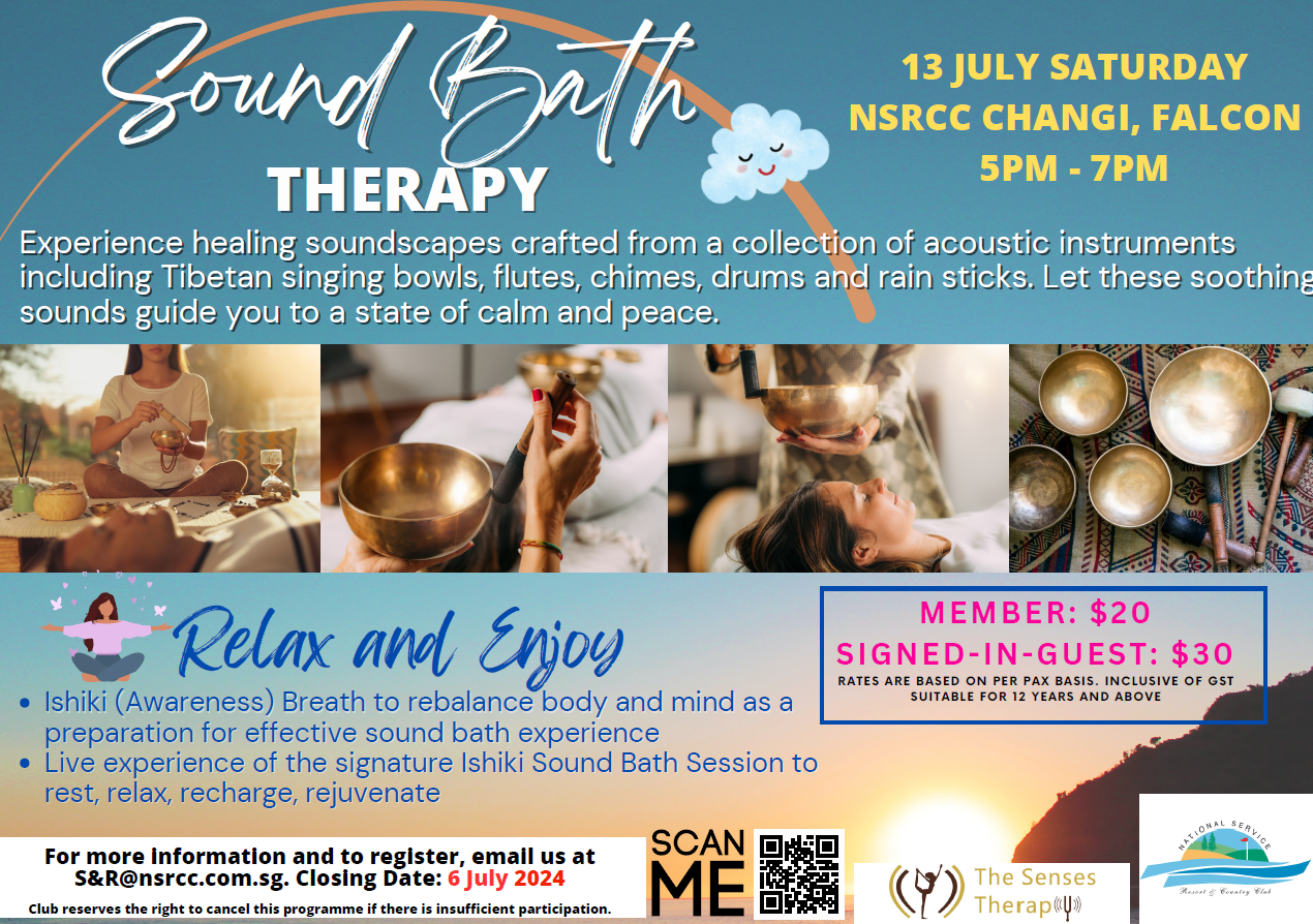 Email S&R@nsrcc.com.sg to register for this healing experience! Ease your body and mind through soothing instruments.