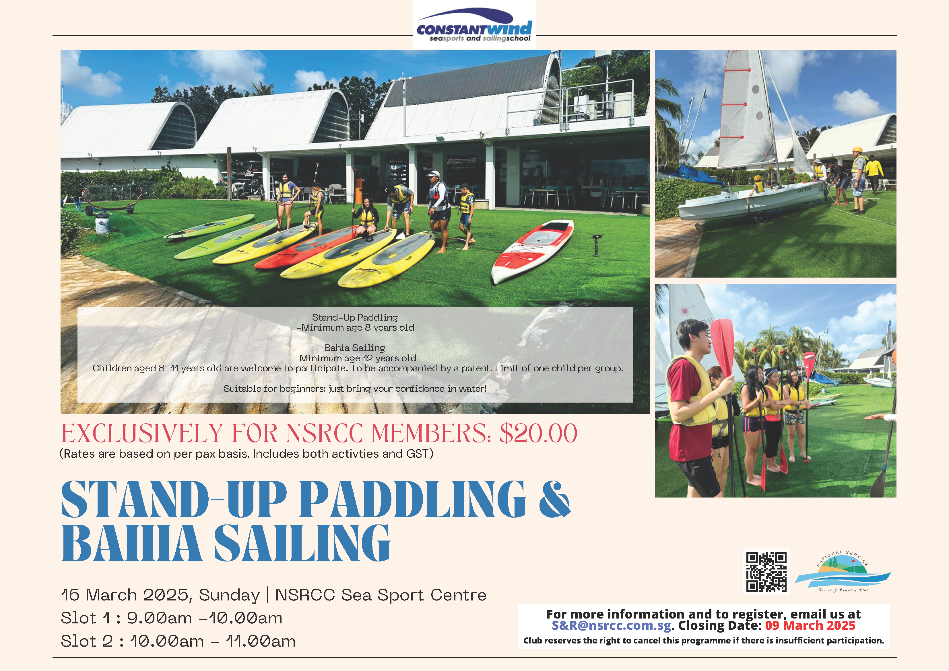 EXCLUSIVELY FOR NSRCC MEMBERS, embrace the spirit of adventure and ride the waves with us! Try out Stand-Up Paddling (SUP) and Bahia Sailing.