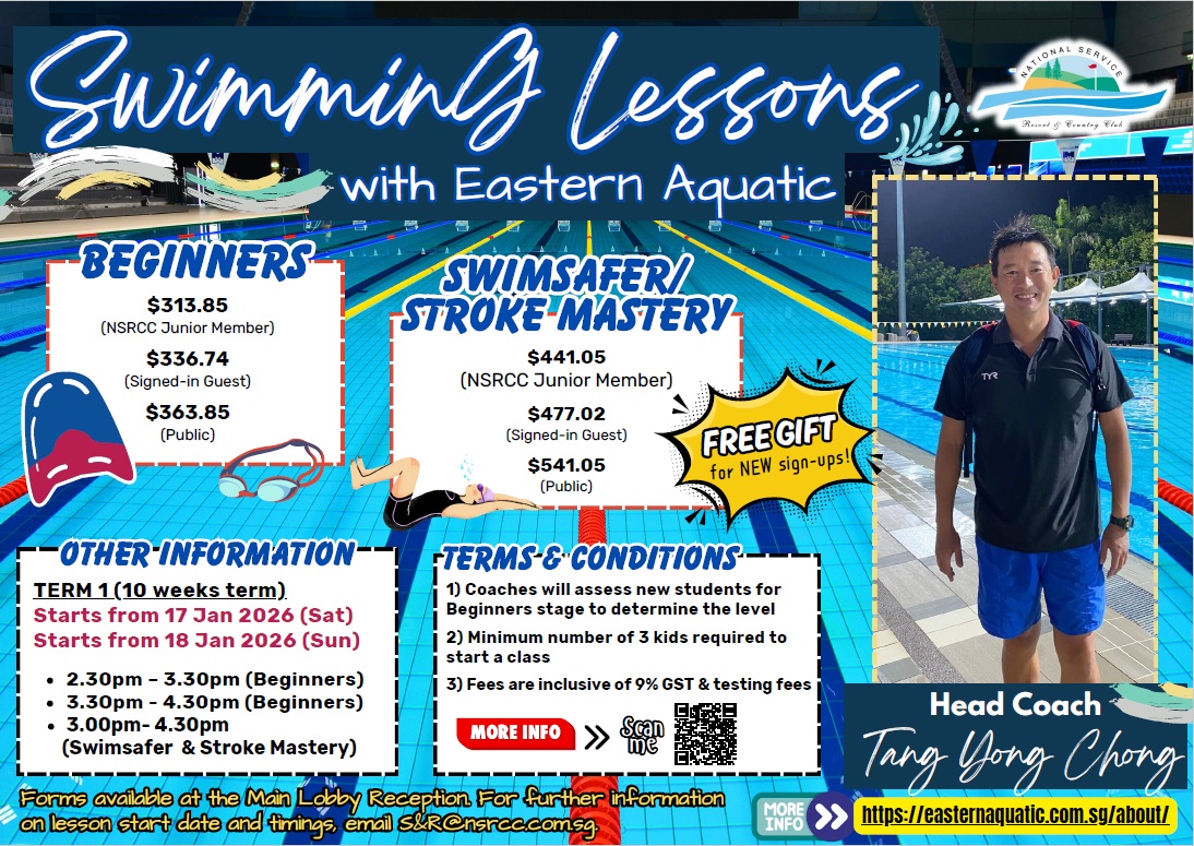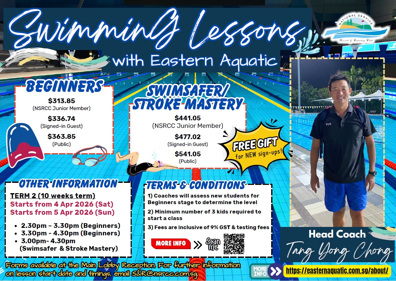 Class Ratio: Beginners - 1 coach to 6 students, SwimSafer - 1 coach to 10 students (Minimum number of 3 students required to start a class)